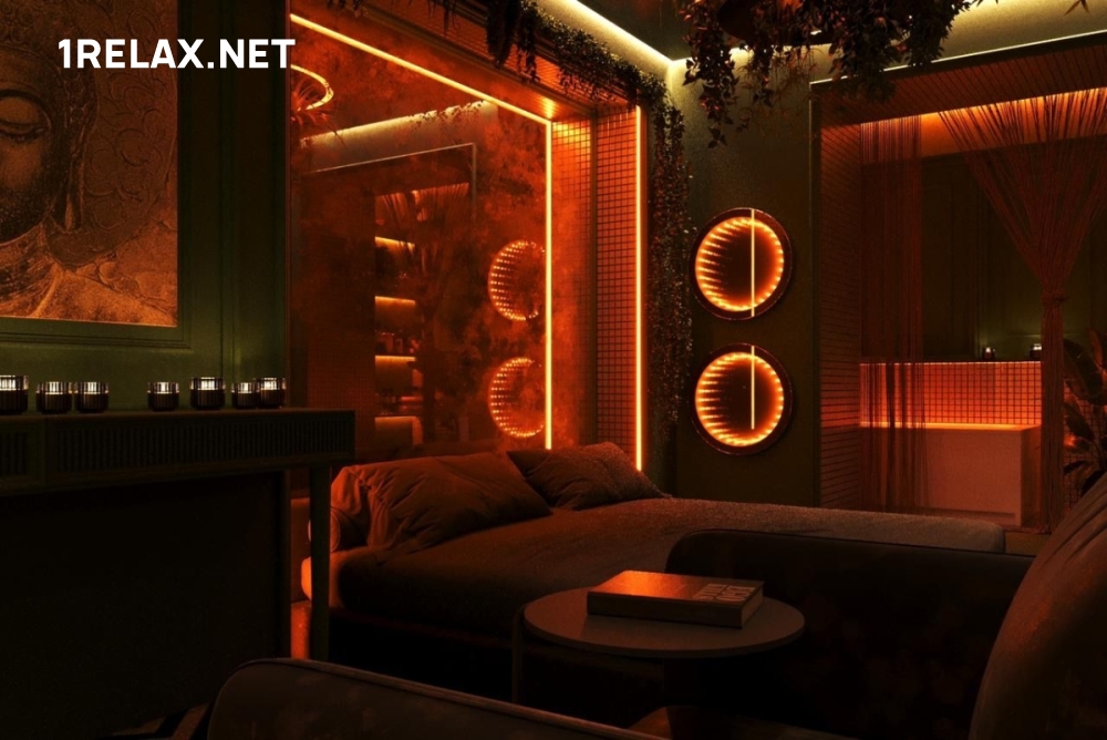 Название массажного салона полностью себя оправдывает — здесь царит расслабляющая атмосфера, которая достигается неяркими серыми тонами, изысканным восточным акцентом в интерьере, ненавязчивой фоновой музыкой и приятными ароматами.